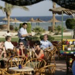 The Carmen Lounge in the center of Flamenco Beach main building is the place to meet and mingle, while you enjoy the panoramic view of the hotel’s swimming pools overlooking the clear blue water of the Red Sea.