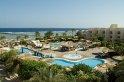 The Resorts are situated directly on the Red Sea, miles of turquoise waters, pristine shorelines flanked by majestic mountain chains and some of the most spectacular and easily accessible Coral Reefs anywhere. The Flamenco Beach & Resort has one of the most beautiful house reefs in the area, easily accessible over a 200 meter long jetty which was built to protect the corals inviting you to enter the sea for swimming, snorkeling and diving. Additionally the Hotel offers Shuttle bus service (with charge), to a nearby natural bay, where one can also swim and snorkel. The International Airport Hurghada is located 120 km (2 hours transfer) north and the new Airport of Marsa Alam 65 km (45 minutes) south of the Hotels. The city of El Quseir is 6 km away and can be reached with the Hotels shuttle bus. The hotel buildings are in the very beautiful and spacious garden area of approx. 20’000-sqm, offer guests a warm and relaxing surrounding with “family atmosphere.” One can also find shops and bazaars adjacent to the hotels.